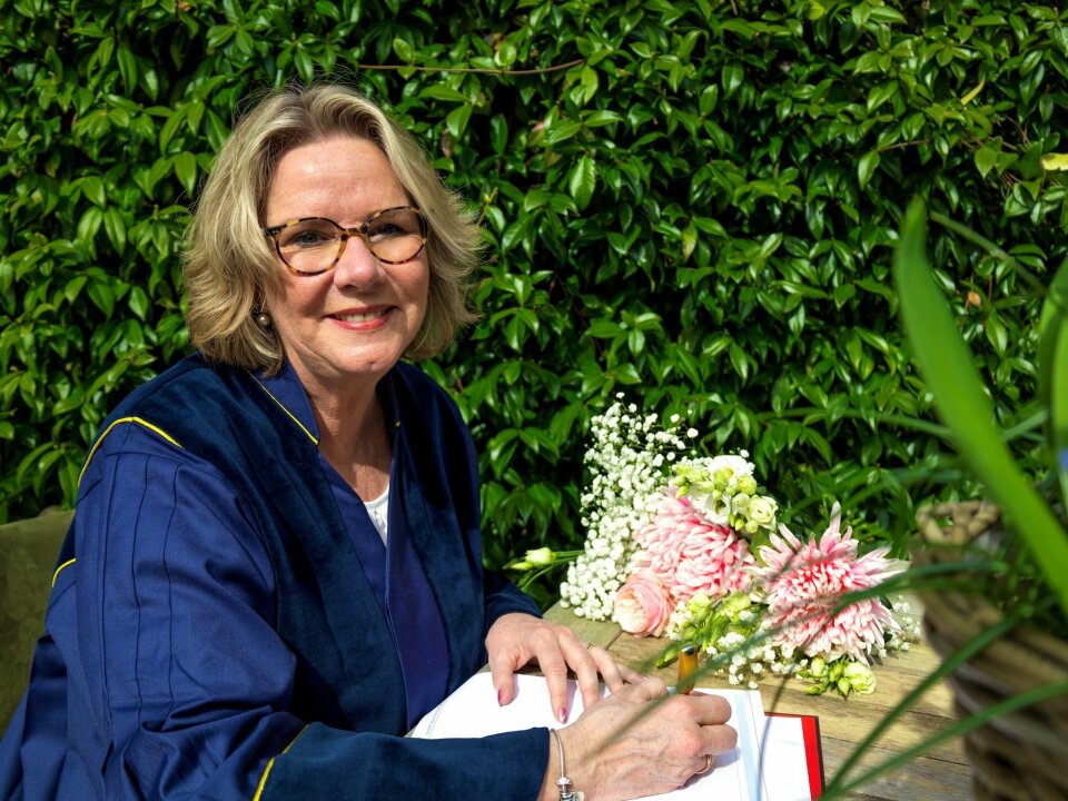 En hoe ze dat doet? Heel simpel: door jullie écht te leren kennen. Eerst even bellen of online kletsen, gewoon relaxed, zonder poespas. En als het goed voelt, schuift ze bij jullie aan tafel om jullie verhaal te horen. Hoe jullie elkaar vonden, waar jullie om moeten lachen, wat jullie dromen zijn. Al die details neemt ze mee in haar speech. Het resultaat: een ceremonie die klopt, die voelt als jullie, en waar je later nog vaak (en hardop) om glimlacht. Zo eentje die je gasten zich óók nog lang herinneren.