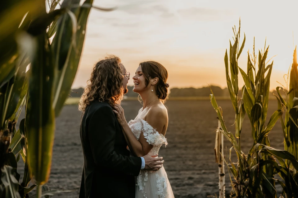 Bij een echte boerenbruiloft mag het allemaal wat losser. Je ziet vaak wat minder strak gedekte tafels en juist wat meer veldboeketten en verschillende zitjes voor de gasten. Het buitenleven staat centraal, maar mocht de zon zich even niet laten zien, dan kun je in de boerderijen en hoeves prima binnen vertoeven. Op sommige locaties kun je samen met je gasten toch lekker buiten zitten onder een stretchtent dichtbij een warm vuurkorfje!