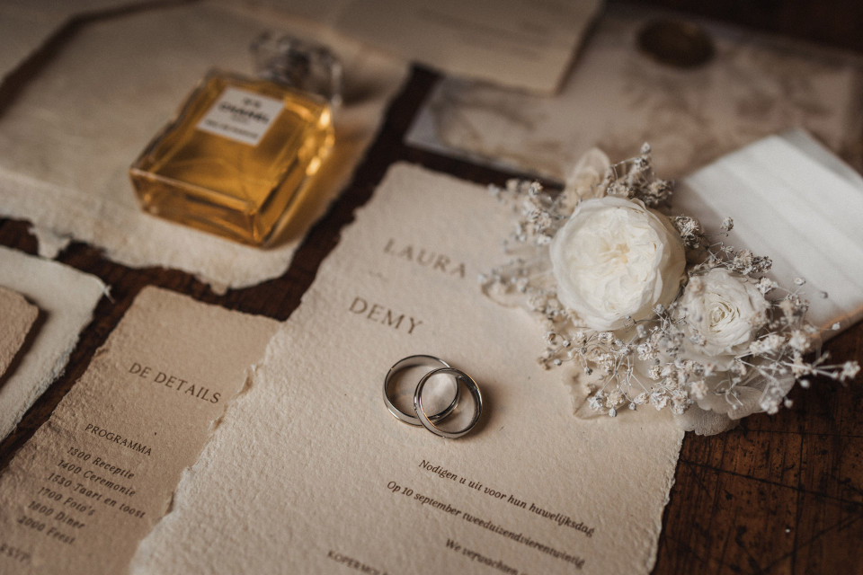 Niks moet, don't get us wrong, maar er zijn een paar dingen die 'officieel' op een trouwkaart horen te staan. De meeste punten uit de opsomming zullen niet als een surprise komen, maar het is toch handig om ze even op een rijtje te hebben, voordat je de trouwkaart gaat bestellen.