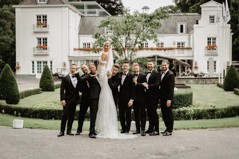 De bruidsjonkers vormen het supportteam. Zij: