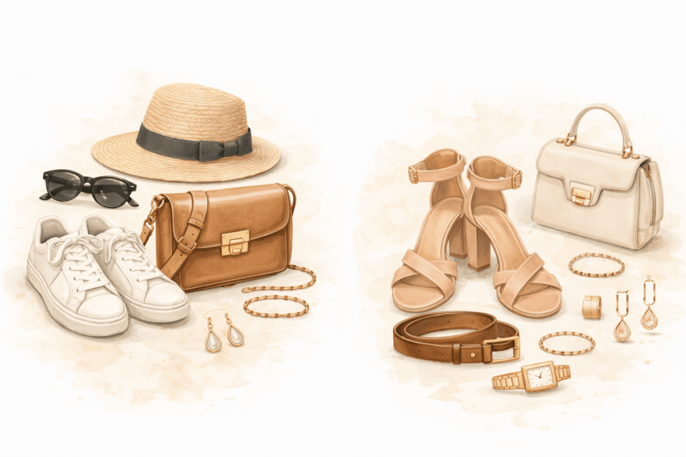 Met schoenen kun je je outfit helemaal sturen. Sneakers geven een casual vibe, terwijl hakken of loafers je look direct chiquer maken. Tip: neem eventueel een tweede paar mee, zodat je kunt switchen gedurende de dag.