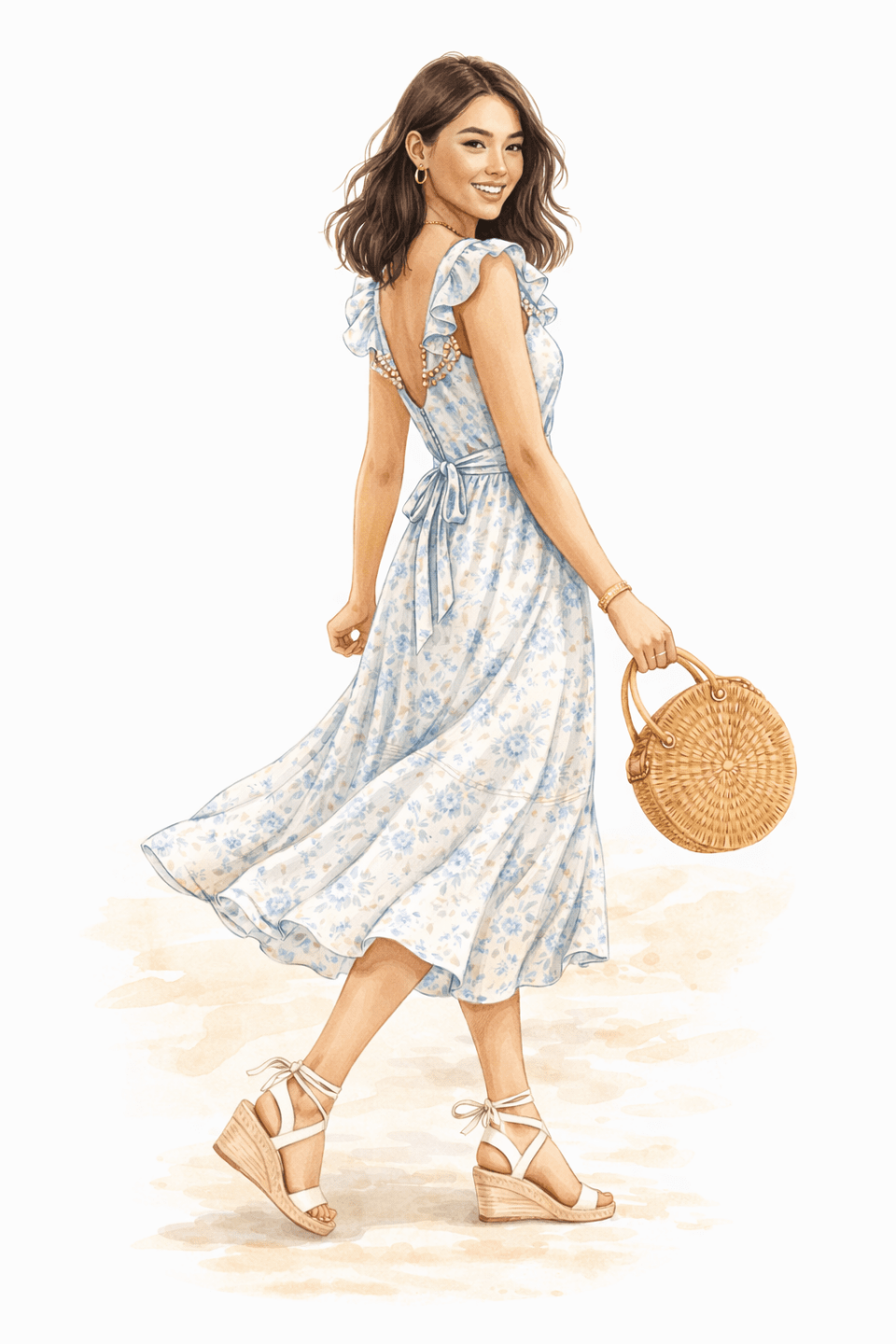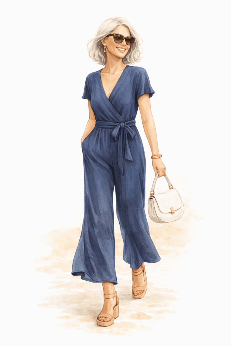 Smart casual is perfect als je het relaxed wilt houden, maar er toch verzorgd uit wilt zien. Voor vrouwen werkt een luchtig jurkje, een jumpsuit of een rok met een mooie top altijd goed. Combineer dit met sandalen, wedges of een blokhak die niet wegzakt in het zand.