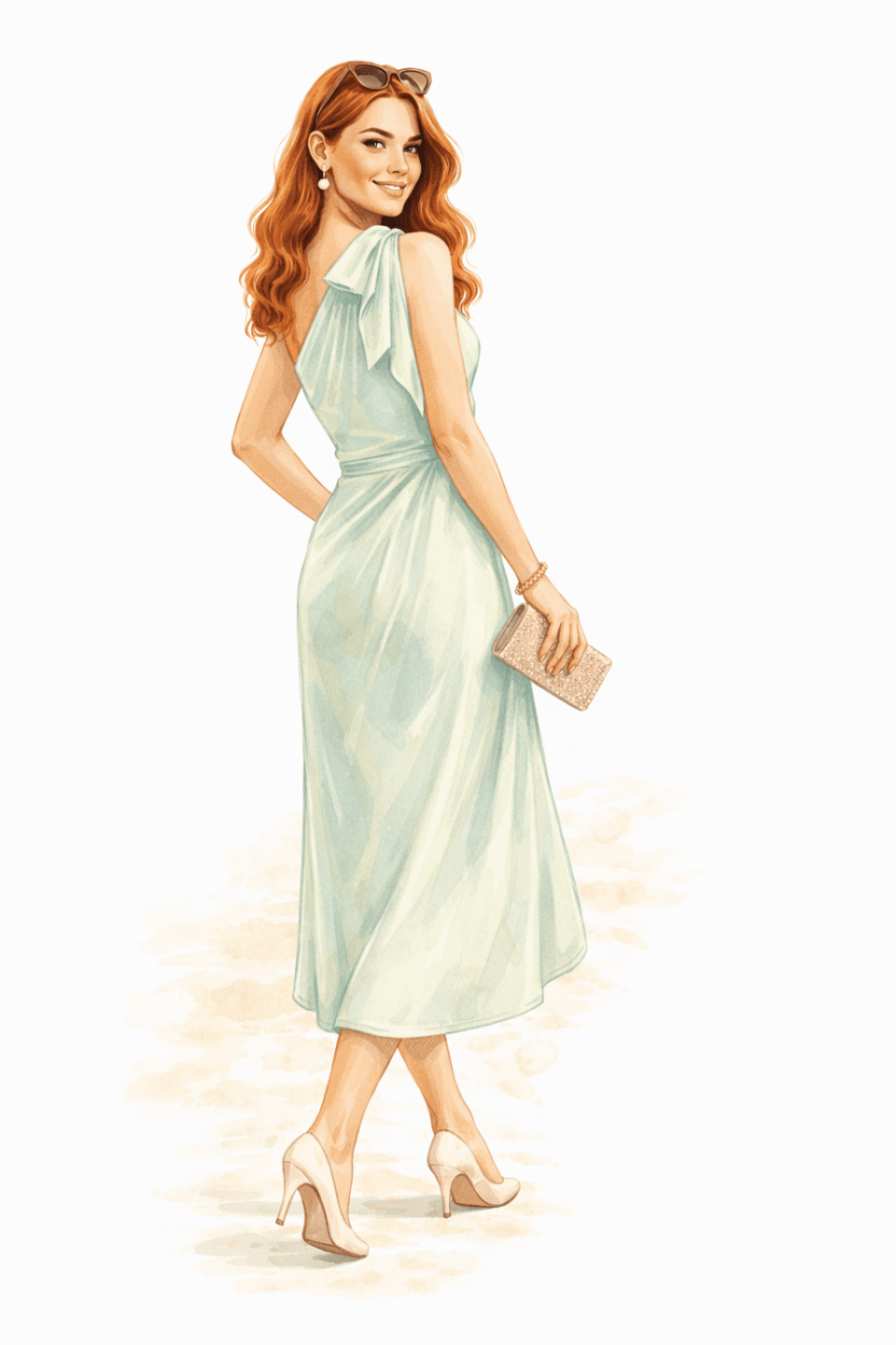 Tenue de ville is iets klassieker, maar kan op het strand nog steeds heel goed — mits je ‘m iets luchtiger houdt. Met deze dresscode is de welbekende cocktailjurk een goede keuze. Kies er wel een in een mooie pasteltint en combineer ‘m met nette pumps en subtiele accessoires. Laat dat nét te korte jurkje voor deze gelegenheid in de kast hangen.