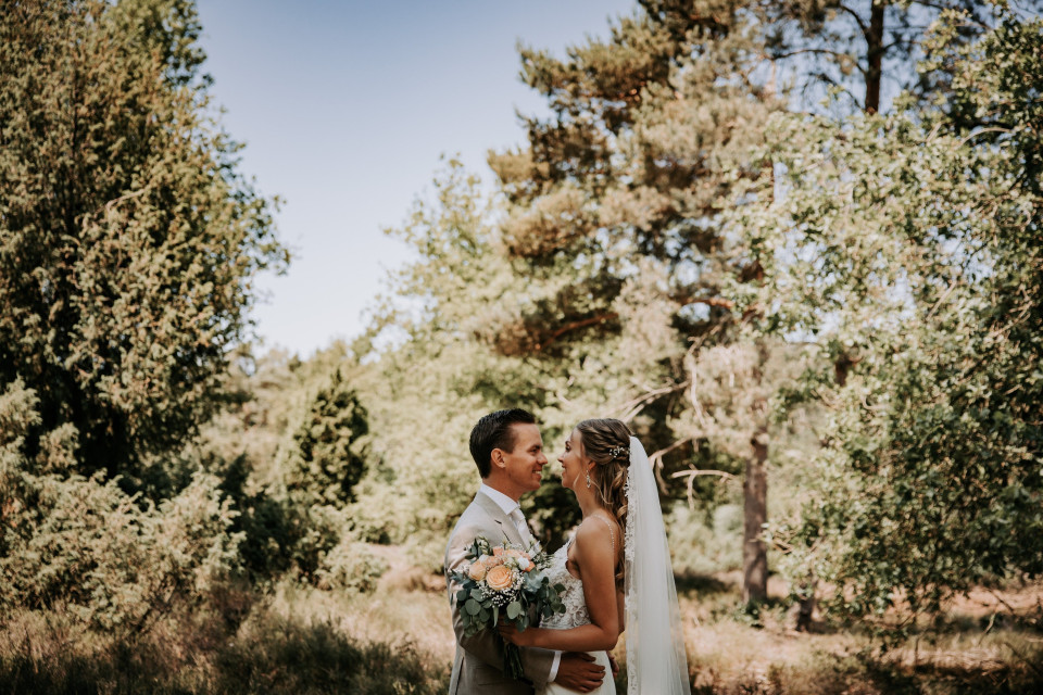 De summer glow wil je natuurlijk vangen op beeld. Let daarom op fotogenieke plekjes zoals een veld vol bloemen of lavendel, een steiger aan het water voor die magische golden hour, fruitbomen in bloei of een charmante binnenplaats. Ook loungehoekjes met kleden, poefs en kaarslicht zorgen voor een dromerige setting. Vraag je fotograaf wanneer de zon precies ondergaat en plan op dat moment een korte shoot. Dat zachte, gouden licht is chef’s kiss voor jullie trouwalbum.