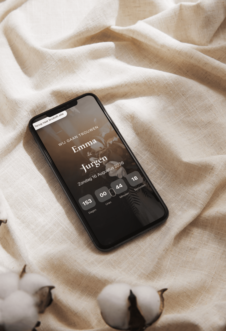Nog even twijfelen of een trouwwebsite écht iets voor jullie is? Bekijk het voorbeeld op bruiloft.site en zie hoe alle onderdelen samen een complete, persoonlijke website vormen. Van het liefdesverhaal en de dagplanning tot het RSVP-formulier... precies zoals jullie gasten het straks te zien krijgen. Wedden dat je daarna niet meer twijfelt?