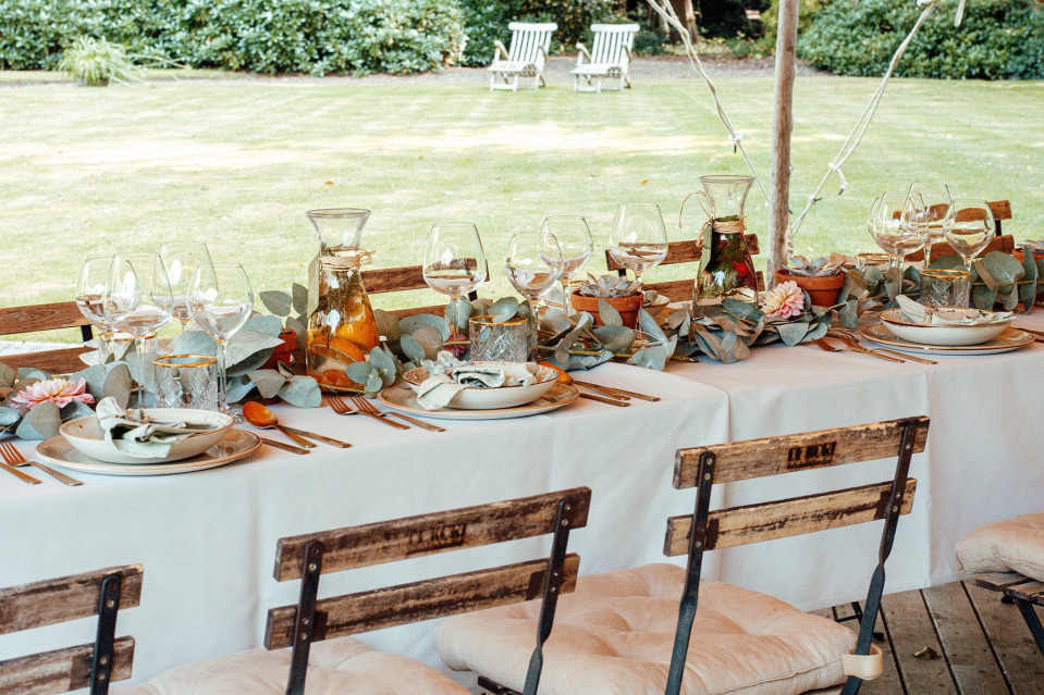 Best for: Intimate and mid-sized weddings (30 to 120 guests), rustic and farm-table settings, and couples who want a convivial, "gathering around the table" feeling. See our table setting ideas for family-style table styling.