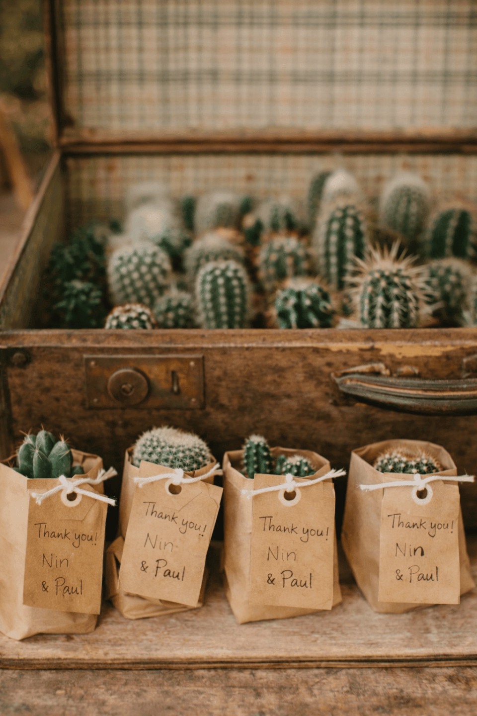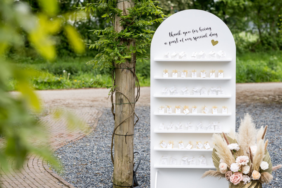 Extra tip: maak het interactief. Laat gasten een wens voor jullie achterlaten en geef ze in ruil daarvoor het bedankje mee. Of werk met kleine ‘memory tags’ waarop je een kort moment van de dag benoemt.