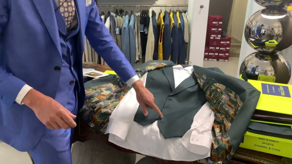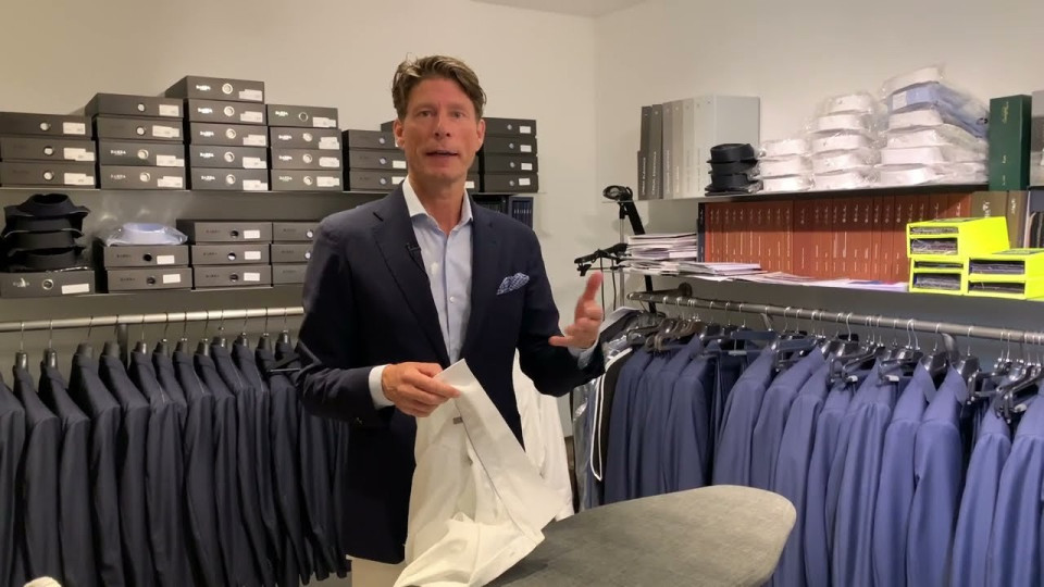 Na het bespreken van je voorkeuren kies je uit een uitgebreid aanbod aan luxe stoffen. Daarnaast personaliseer je jouw pak met details als stiksels, knopen, voeringen en zelfs je initialen, namen van haar en hem én de trouwdatum. Vervolgens gaat je order naar Italië, waar jouw outfit in productie wordt genomen.