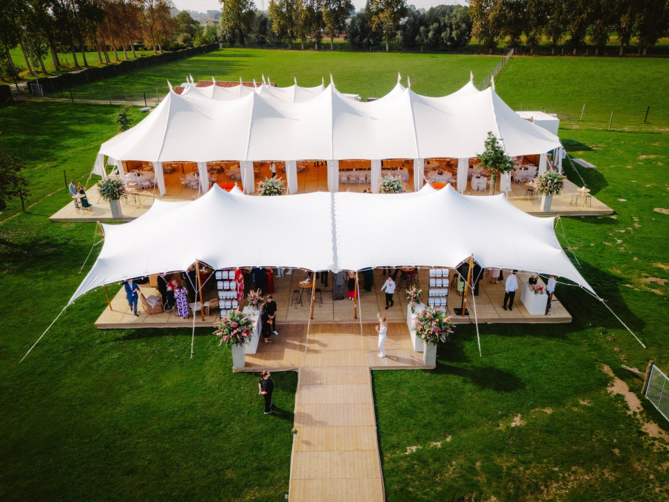 De Stretchtent van 2VRent is de perfecte keuze voor bruidsparen die flexibiliteit en karakter willen combineren.