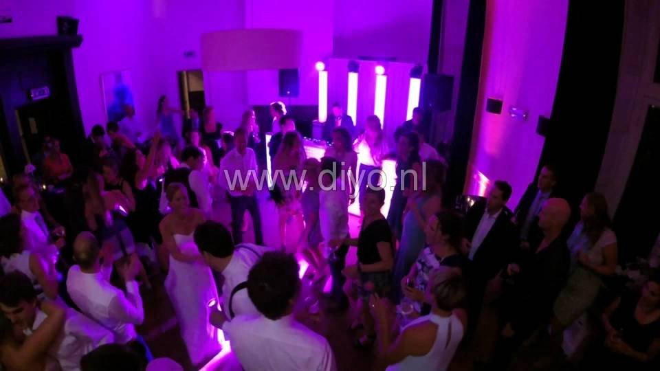 Mijn muziekcollectie is breed: van jaren ’60 tot de laatste top 40. Sfeer is belangrijk op het feest. Graag denk ik met je mee over verlichting, kleuren en accessoires. Er is heel veel mogelijk om je feest nog persoonlijker te maken, zoals een kleurenthema, een verlichte dansvloer, live entertainment als een saxofonist of een uniek videogastenboek.