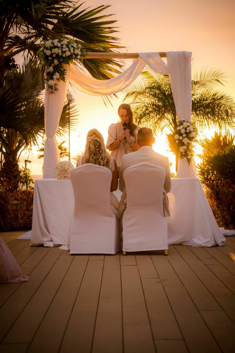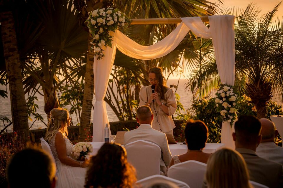 Lizette leidt ceremonies in het Nederlands, Engels, Spaans en op verzoek Duits, waardoor families, talen en culturen samenkomen in één persoonlijk verhaal. Dankzij haar netwerk van lokale professionals kent zij de mooiste unieke plekken op Tenerife: van moderne villa’s en authentieke locaties tot intieme beachclubs. Alles wordt zorgvuldig op elkaar afgestemd, zodat jullie ontspannen kunnen genieten van een ceremonie die persoonlijk, warm en volledig in balans voelt.