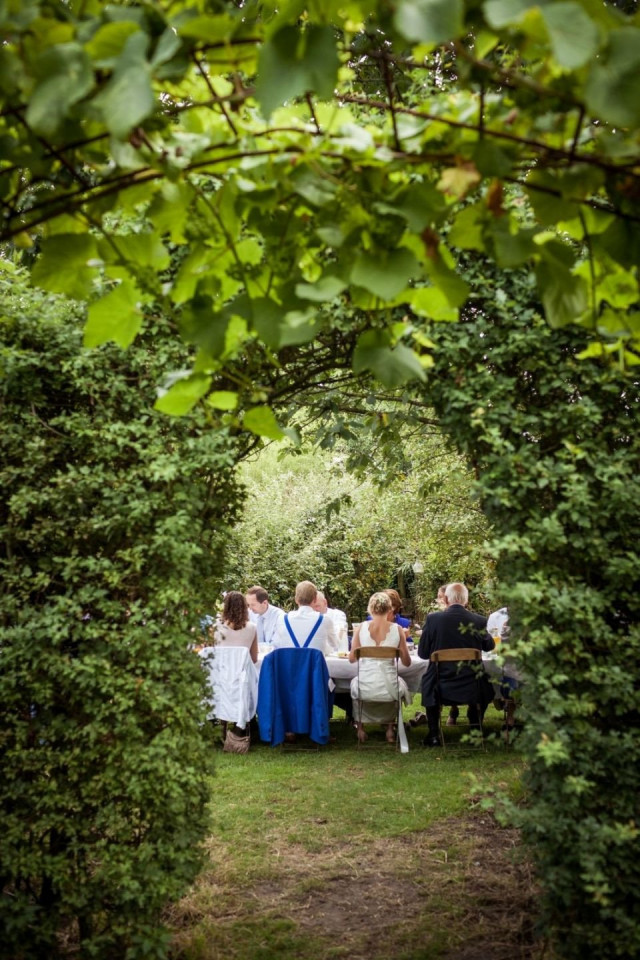 Wil je eten in een boomgaard, op een weiland, of een moestuin? Dat kan! Zeker als jullie in de zomer trouwen is het geweldig om met al je gasten aan tafel te gaan in de tuin en tot in de late uurtjes te genieten van dat zonnetje. Je kunt het zo gek maken als je zelf wilt, zet lange campingtafels neer door bijvoorbeeld het hele weiland voor een casual camping vibe of ga chique met z'n allen aan tafel omringd door de romantische boomgaard.