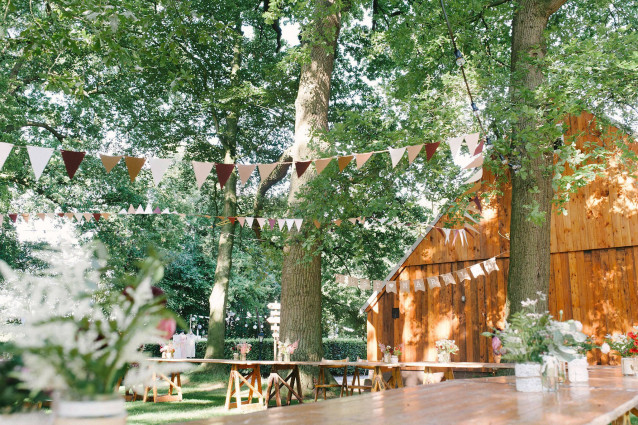 Vergis je niet dat je alleen buiten aan tafel kan aanschuiven als je gaat trouwen in het buitenland . Ook ons meestal zo koude kikkerlandje heeft prachtige dagen om te genieten van een bruiloftsdiner in de natuur. Als je toch zekerheid voor alles wilt hebben, kun je natuurlijk prima een tent neerzetten waarvan je de 'muren' gewoon open kunt doen, zodat je toch van die buitenlucht kunt genieten.