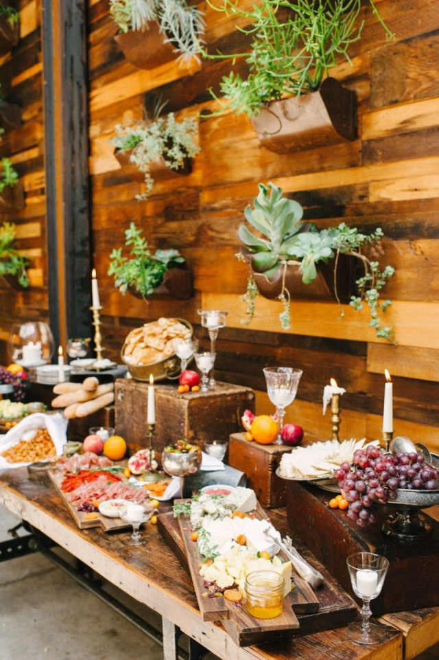 Een geheel nieuwe trend uit de VS is dat er geen schalen met hapjes de ronde gaan bij de borrel op de receptie of het feest. Het is tijd voor een gestijlde tafels met daarop heerlijke groenten, kruiden en lekkere hapjes met daarbij een goede wijn. Bij het zien van deze foodstyling van borrelhapjes op je bruiloft loopt bij ons het water al in de mond!