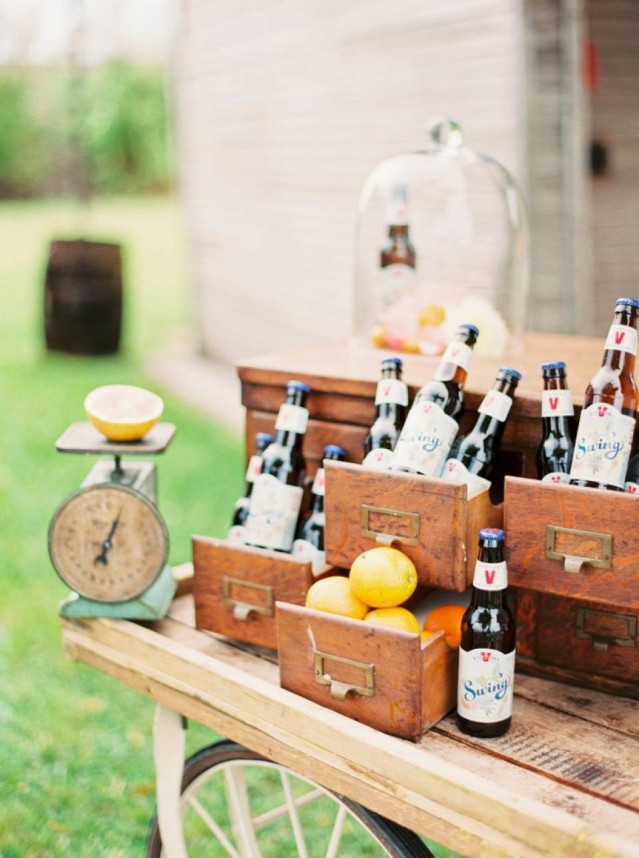 Niet alleen het eten, maar ook de drank kun je op een gave manier opstellen op je bruiloft. Je kunt bijvoorbeerd een speciale bier- en wijnbar inrichten of maak een leuke tafel met limonade op je bruiloft.