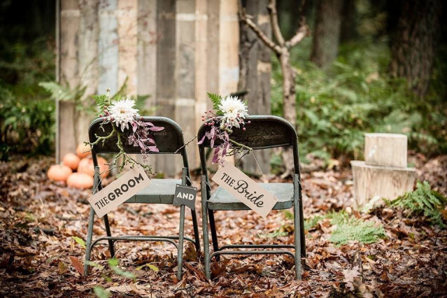 Ga je liever voor bordjes op je bruiloft? Hang bordjes op de stoelen met 'bruid' en 'bruidegom'. Je kunt ook een leuk krijtbordje aan de stoel hangen en daar zelf iets op schrijven!