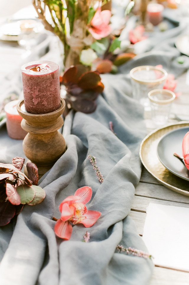 Die donkere winterse dagen zijn misschien super kort, koud en vermoeiend, maar gezellig zijn ze wel! Al helemaal als de kaarsen (of zelfs de open haard) worden aangestoken en het warme kaarslicht de donkere kamers verlicht. Het romantische kaarslicht is super pretty in combinatie met donkere bloemen, warme metallic kleuren en luxe tafelbekleding. Luxueus, warm en romantisch... alle elementen waar wij helemaal verliefd op zijn!