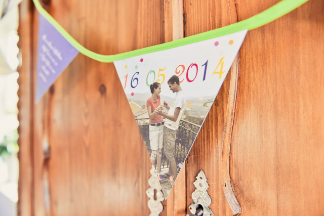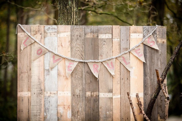De klassieke vlaggetjes blijven ook zeker hoog in ons lijstje staan, het zijn niet voor niets klassiekers! Het leuke aan vlaggetjes is dat je kunt gaan voor een vintage look of juist met verschillende kleuren je bruiloft kunt versieren. Ook een tof idee: laat je eigen vlaggetjes printen met foto's van jullie en de gasten en vermeld ook de trouwdatum op de vlaggen!
