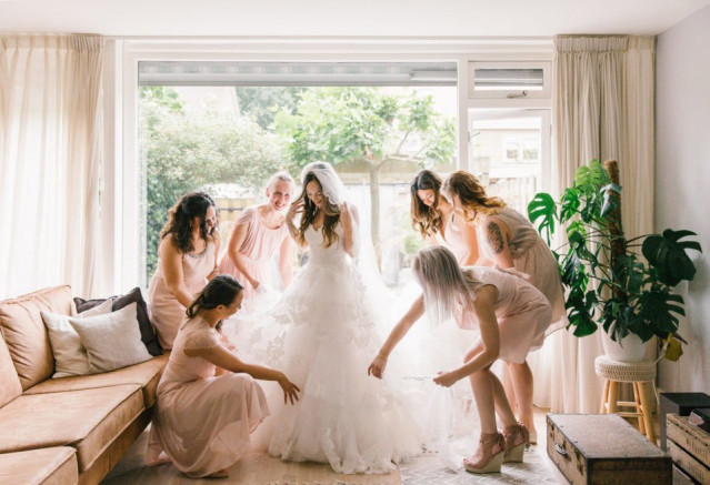 Tegenwoordig dragen bruidsmeisjes niet meer hetzelfde als de bruid, thank god! Het is natuurlijk jouw dag, en je wilt de limelight niet delen! Maar het is wel leuk als je girls samen een eigentijdse variant van Charlie's Angels vormen, door bijvoorbeeld dezelfde jurkjes, boeketten of accessoires te dragen. Mismatched bruidsmeisjes zijn ook een upcoming trend, hierbij laat je je meiden lekker zelf kiezen wat ze dragen. Op deze manier kunnen je bruidsmeisjes hun eigen persoonlijkheid uiten, waardoor ook zij zullen stralen. I mean, hun sprankelende persoonlijkheid is toch één van de belangrijkste redenen van jullie vriendschap? Laat ze dus lekker zichzelf zijn!