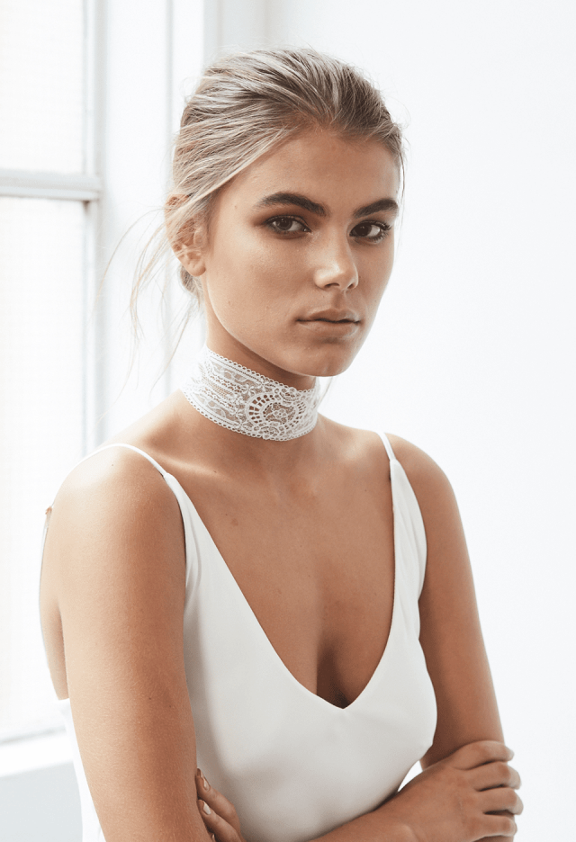 Wanneer je jurk zich leent voor een choker, laat je dan inspireren door deze France lace shokers. De chokers zijn niet alleen gemaakt van verschillende materialen, ze hebben zelfs een eigen naam! We hebben Chase die is gemaakt van zijde, Khalo van kant, Stella van leer, Andromeda van goud en parels en Maya heeft een prachtige parelhanger. Afhankelijk van de stijl van je jurk, je kapsel en de andere sieraden kan een van deze chokers een match made in heaven zij voor jou.