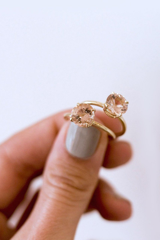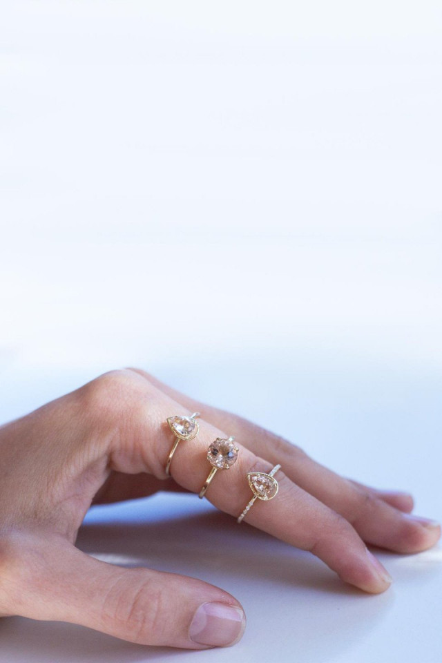 Laat ik maar meteen met de deur in huis vallen en jullie laten kennismaken met Celine, Harper, Queenie en Poppy. De Celine ring is een echte must-have verlovingsring. Deze gouden ring heeft een peervormig geslepen morganiet edelsteen in champagne kleur en diamanten op de zijkant van de ring. Morganiet is een natuurlijke edelsteen waarvan de kleur van nature varieert van peach-pink-champagne. Het zusje van Celine is de Harper ring, een vrouwelijke en subtiele ring met een peervormige morganiet edelsteen. De Queenie ring is voor de diamond lovers onder ons en rondom helemaal gezet met diamanten. Voor de moderne bruid is de klassiekere Poppy ring ontworpen. Deze solitair ring met morganiet is just pure magic. Lastig kiezen hè, welke is jouw favoriet?