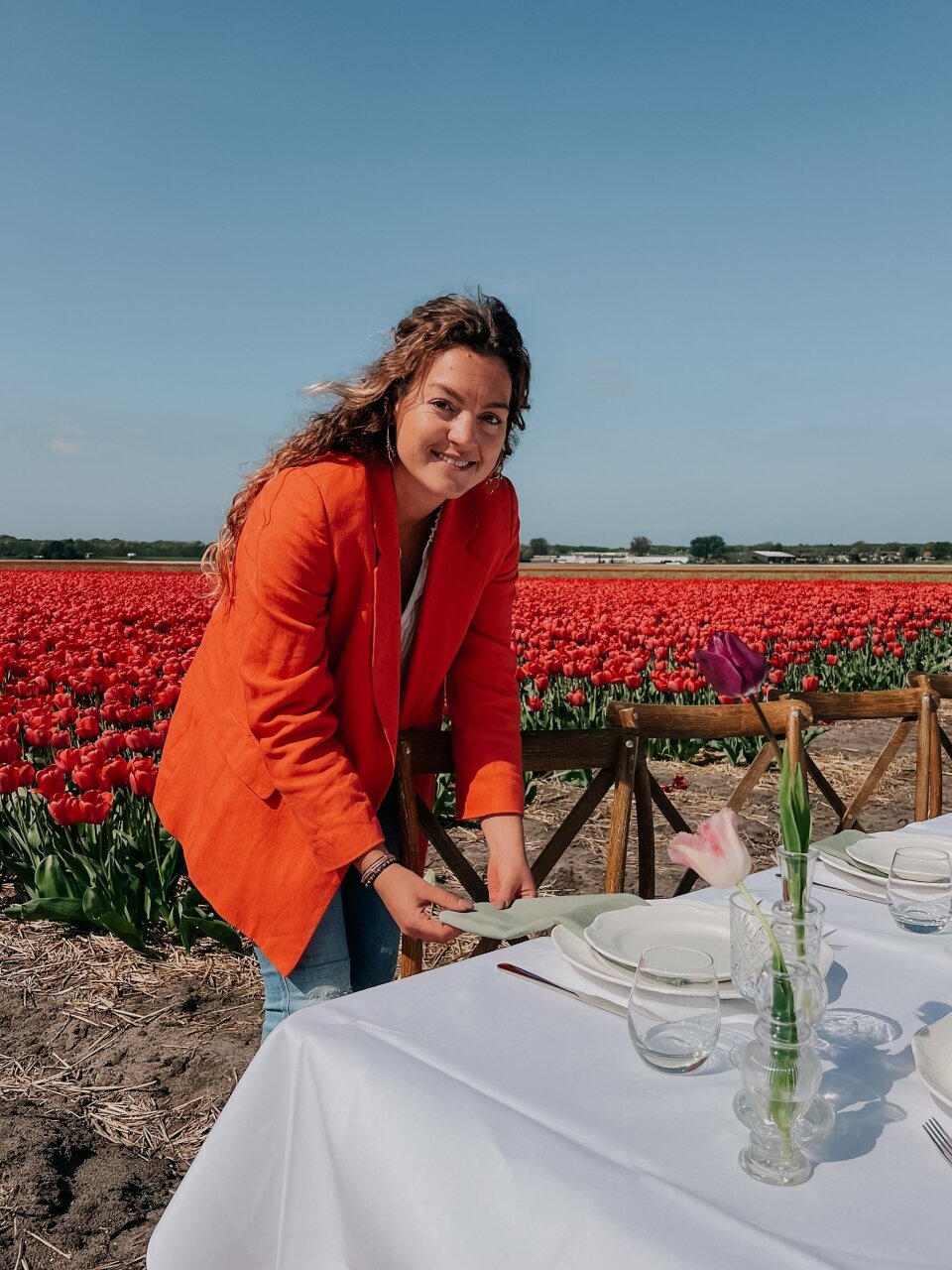“We werken met vaste leveranciers die ons toegang geven tot de mooiste velden. En we maken het compleet: van lichtletters tot live muziek en zelfs een lunch met champagne,” zegt Michelle.