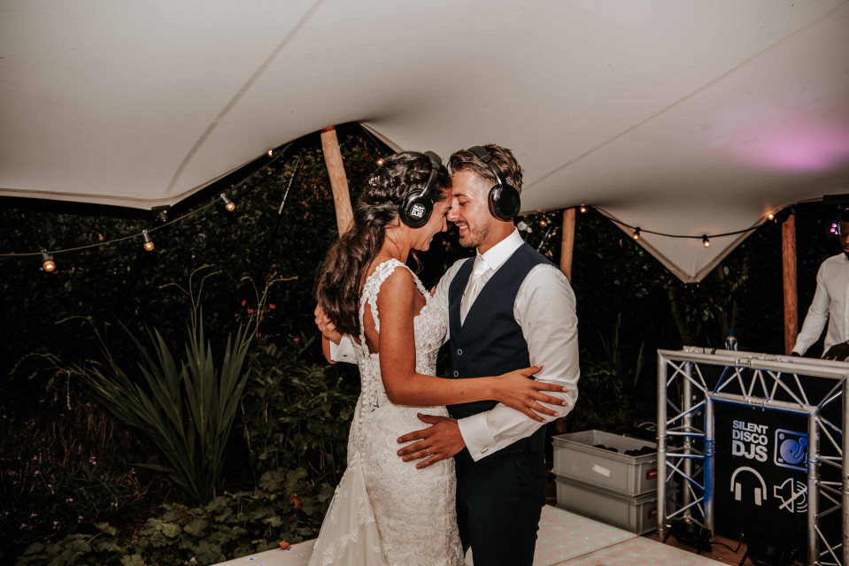En eerlijk? Niets is leuker dan kijken naar een dansvloer vol mensen die allemaal losgaan… in stilte. Het is hilarisch, intiem én super fotogeniek. Geef de drie kanalen leuke namen, zoals Team Bride, Team Groom en Love Songs Only en laat de kleuren van de koptelefoons matchen met jullie bruiloft thema.