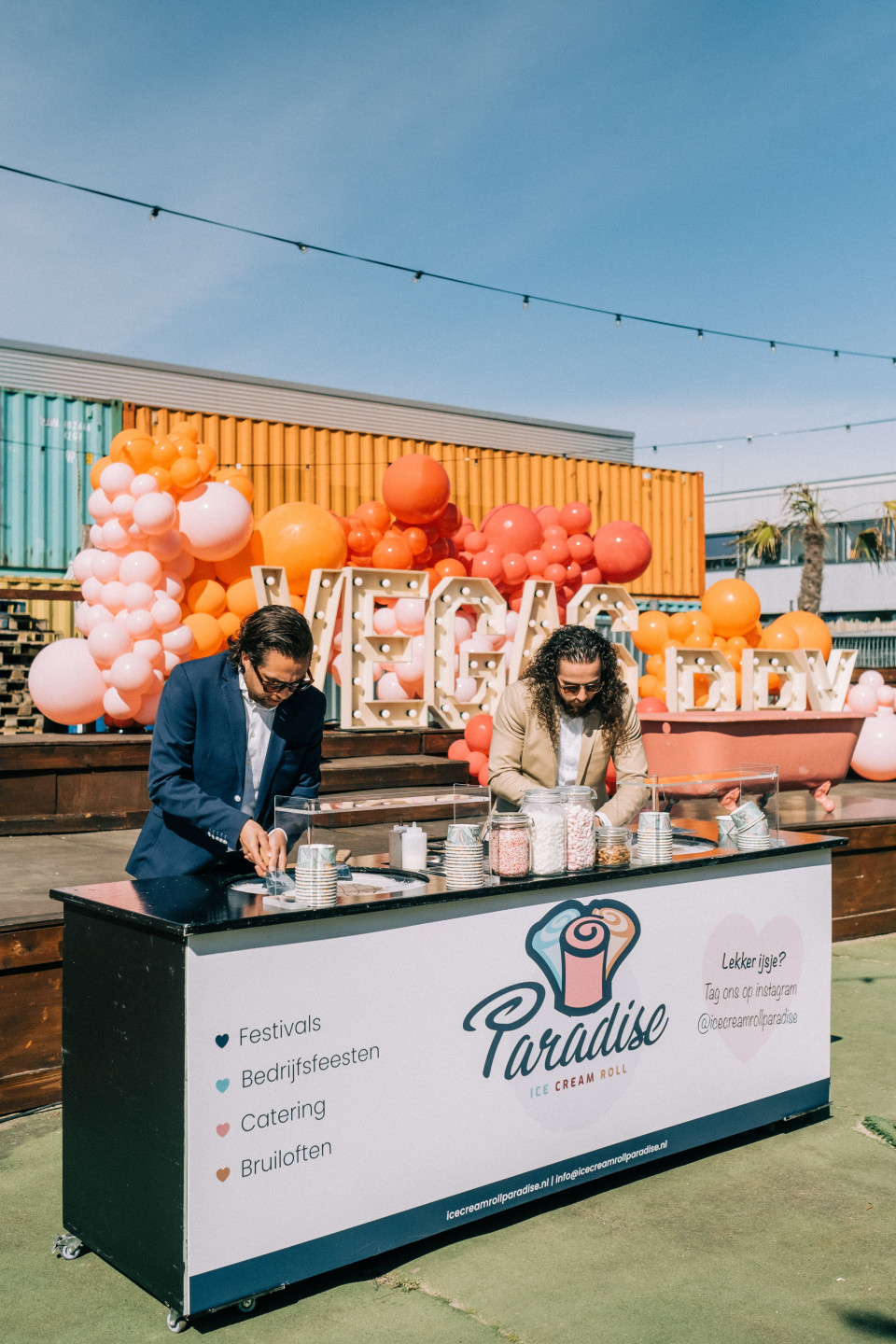 Voor de ultieme sweet treat: ice cream rolls! Dit is niet alleen superlekker, maar ook een echte beleving voor je gasten. Vers bereide rolletjes ijs worden voor je neus gemaakt en gepimpt met toppings naar keuze. Maar ook een klassieke ijscoman op je bruiloft is een echte hit! Laat je gasten genieten van een bolletje ijs in een hoorntje, heerlijk voor die zomerse dagen. Of ze nu gaan voor een smaak als vanille of liever iets exotischers kiezen, een ijsje blijft altijd een feestelijk en verfrissend moment op je grote dag.