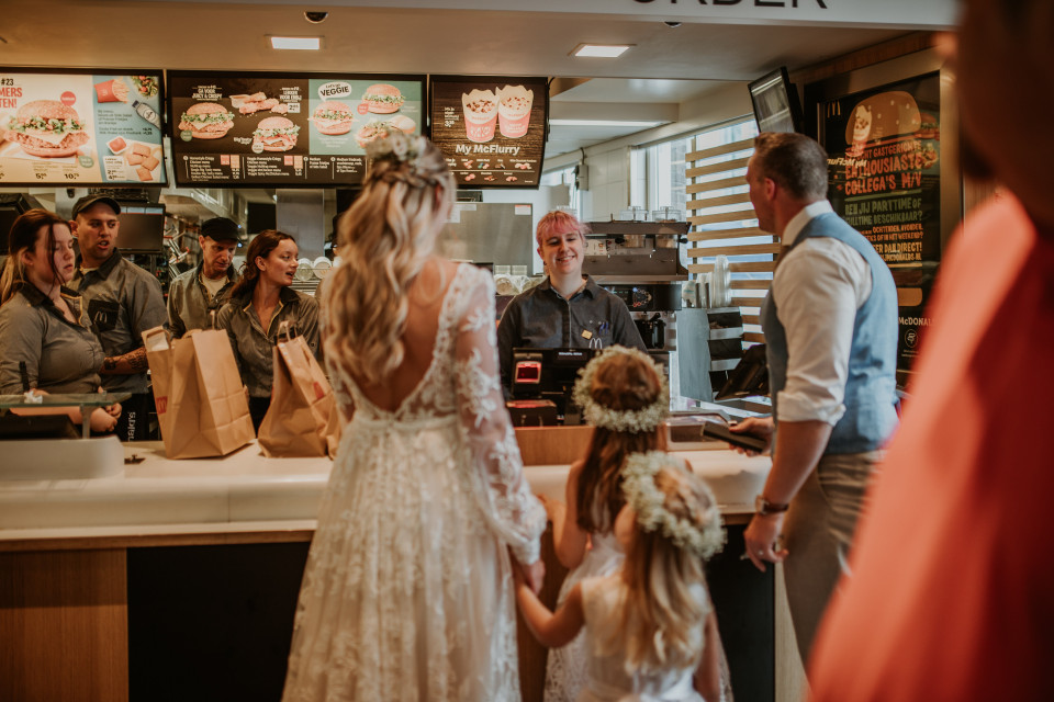 Het klinkt misschien onverwacht, maar we zien steeds meer bruidsparen die gewoon lekker McDonald's laten bezorgen of zelf even langs de drive-thru rijden tijdens hun bruiloft! Perfect voor die late-night snack cravings of als een speelse twist op het traditionele diner. Van een doos vol cheeseburgers tot een happy meal voor de kids (en de volwassenen die stiekem ook wel willen) – het zorgt voor een relaxte sfeer en een vleugje humor op je grote dag. Wie had gedacht dat Maccie zo’n bruiloftstrend zou worden?