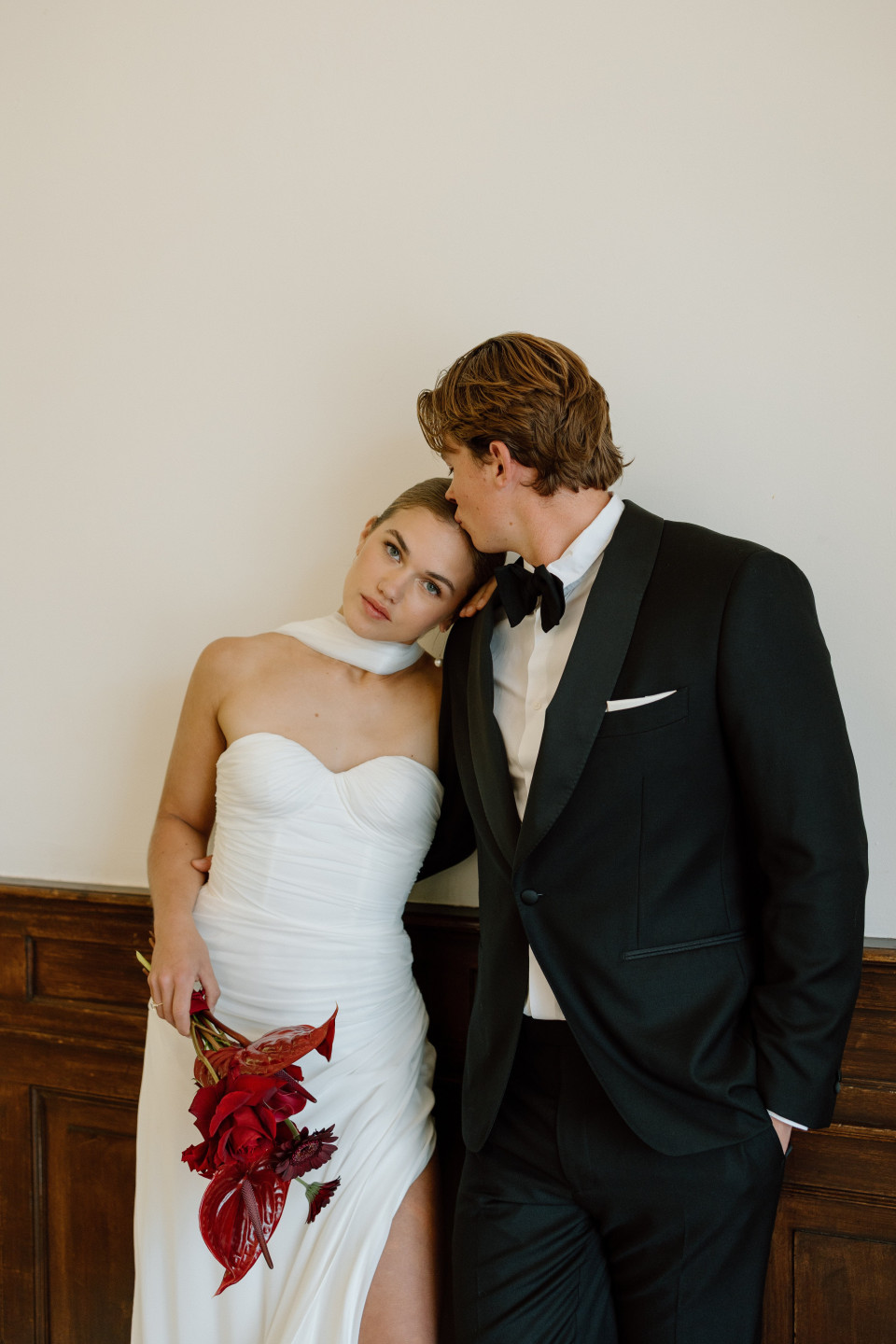 Of je nu kiest voor all-white klassiekers zoals lelies en rozen, of een edgy rode variant, een monochrome boeket zorgt altijd voor een clean, high-fashion look. Plus, het laat je jurk écht shinen.