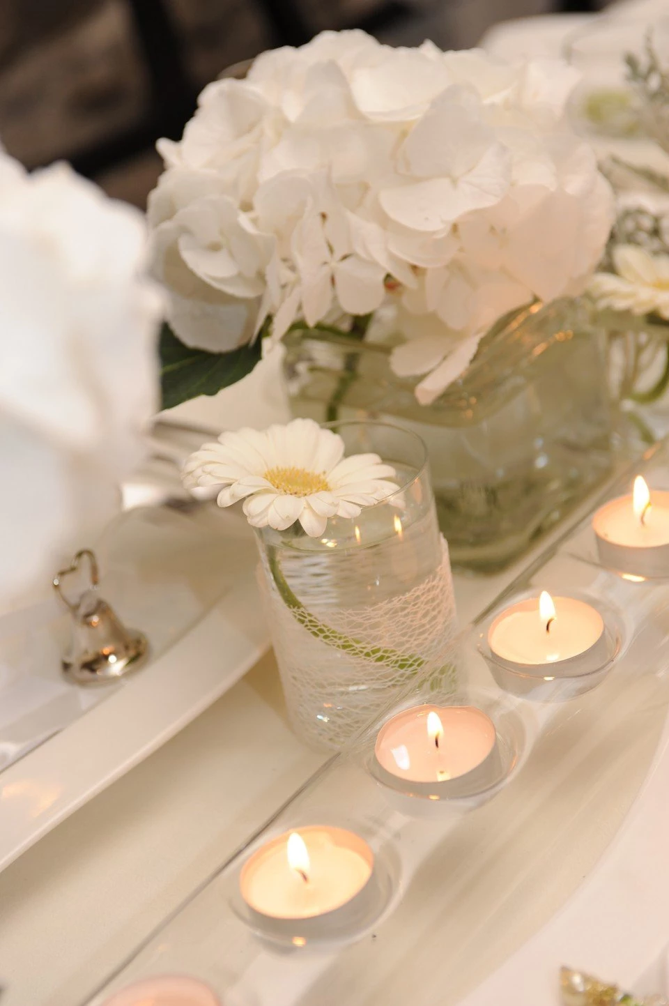 - Tafellampen: Creëer extra sfeer aan tafel door tafellampen te plaatsen. Versier ze met bloemen om de draadjes te verbergen.