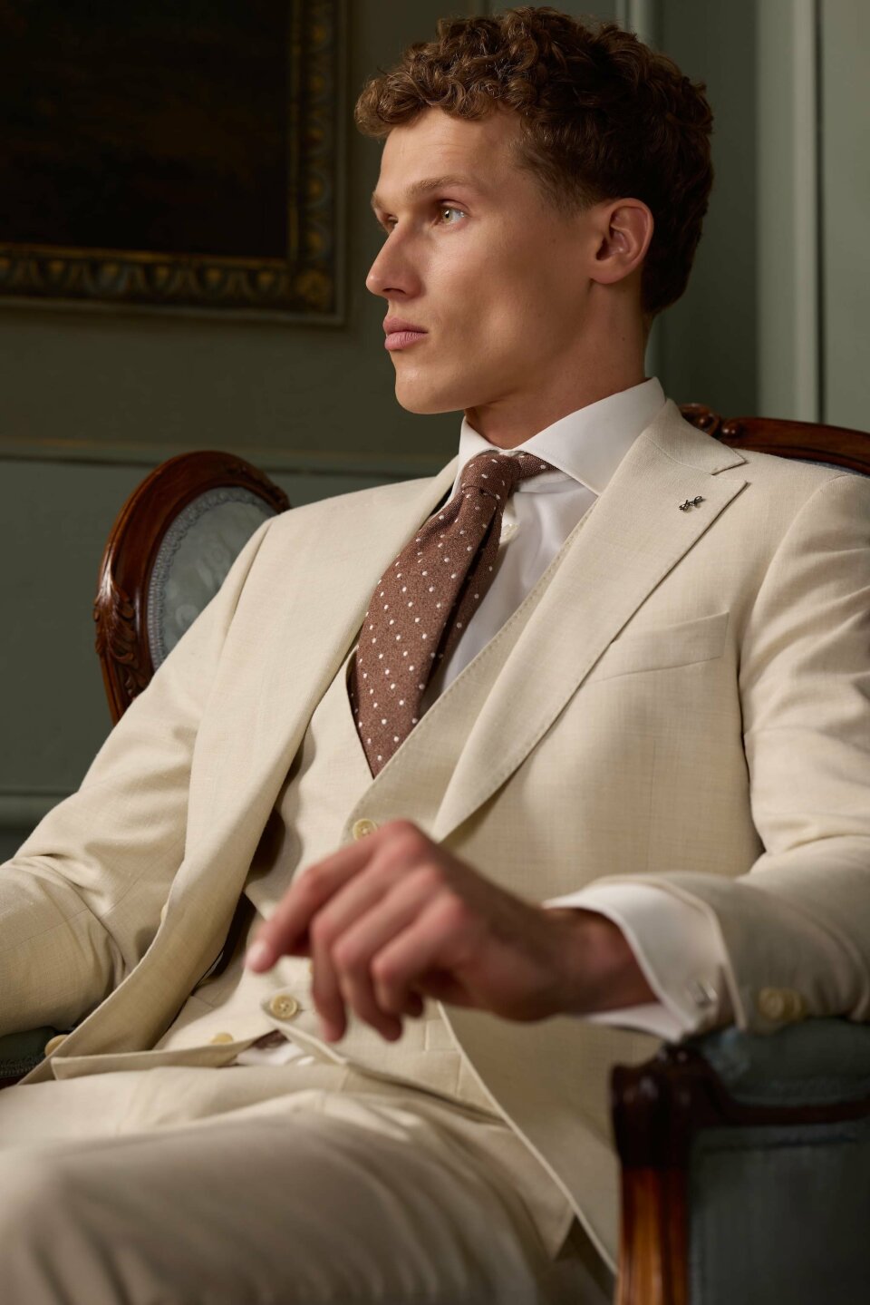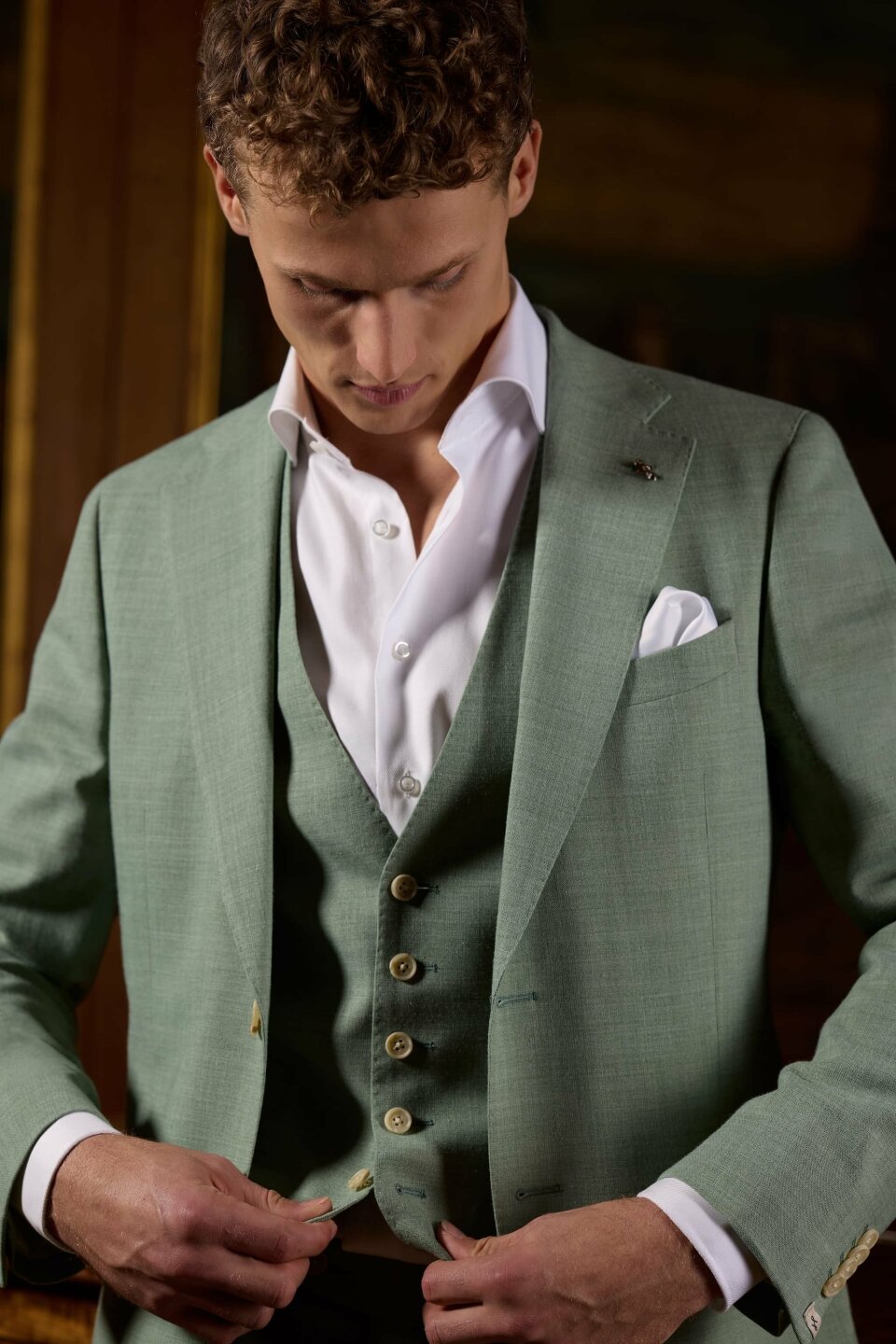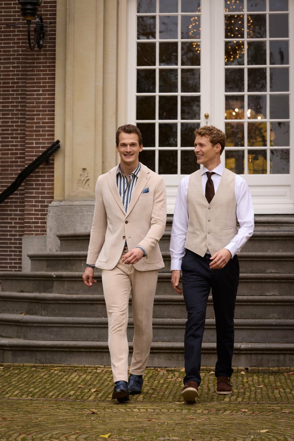 Daarnaast winnen warmere kleuren terrein. Denk aan bruin en subtiele roodtinten, variërend van licht tot donker. Deze kleuren geven trouwpakken een moderne uitstraling, zonder dat ze hun tijdloze karakter verliezen.