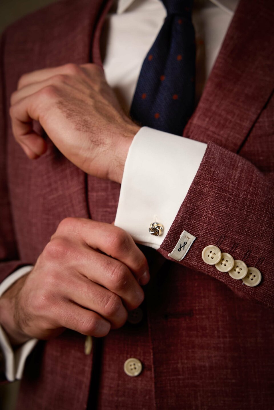 - De mouwen laten een klein stukje overhemd zien