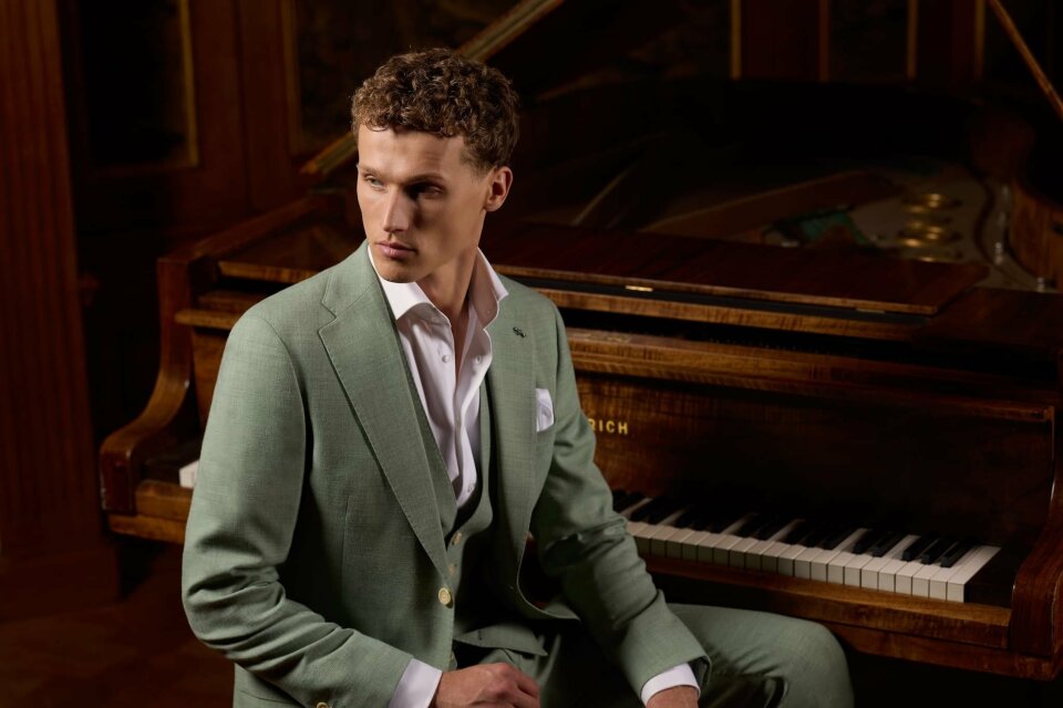 Hoewel herenmode niet elk seizoen radicaal verandert, ziet Jac Hensen duidelijke verschuivingen in kleurgebruik. Blauw, groen en beige blijven favoriet, maar dan in zachtere tinten zoals lichtblauw, lichtgroen en lichtbeige.