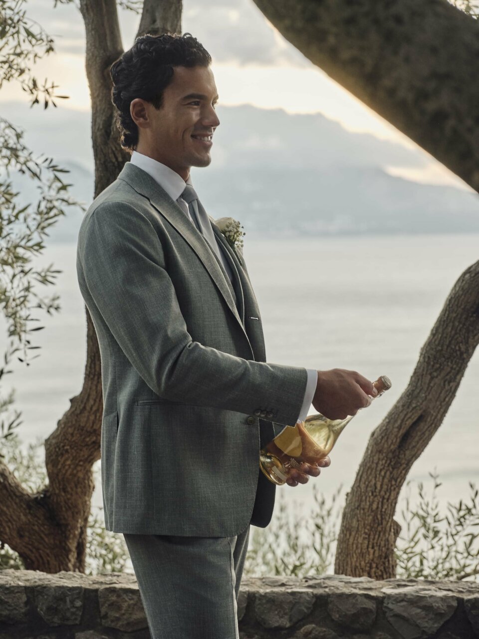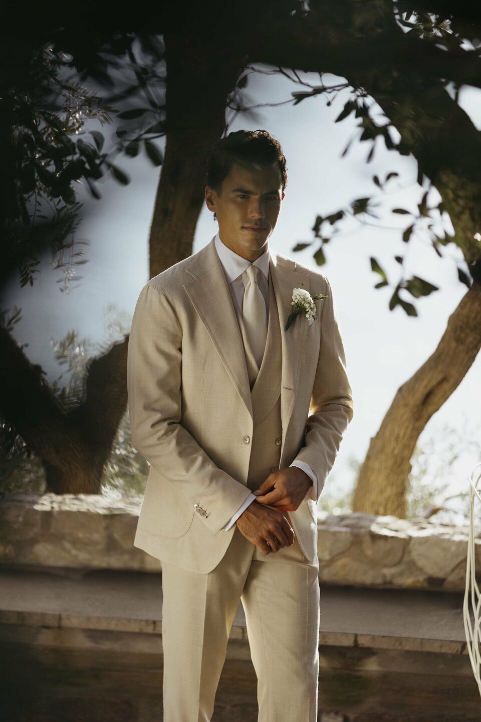 Dat hangt af van de sfeer van jullie bruiloft. Bij een informele of zomerse avond kan een licht pak prima. Maar bij een meer formele setting voelt een donkerder pak vaak beter in balans met het licht en de omgeving.