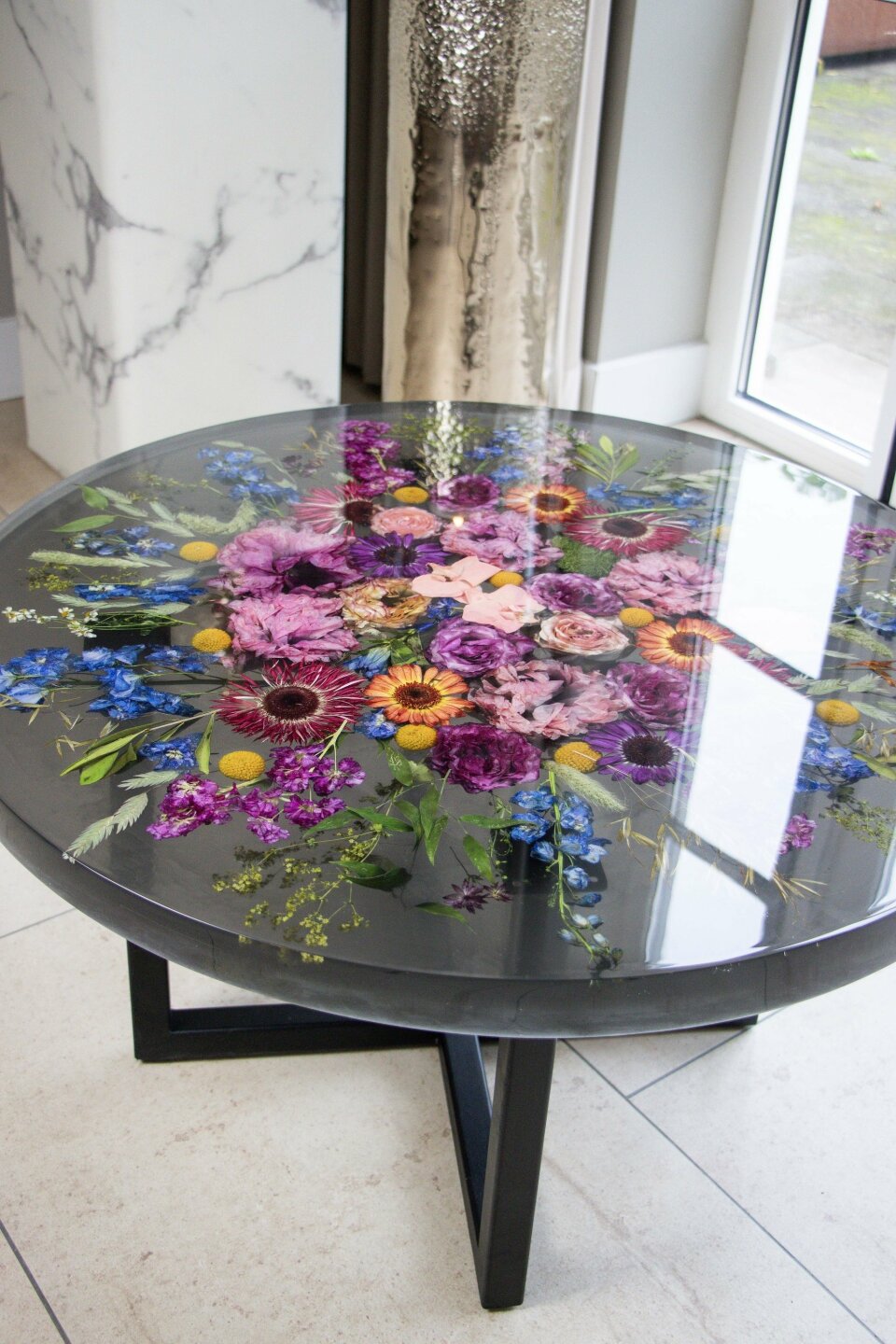 De bloemen worden zorgvuldig individueel gedroogd en daarna verwerkt in een creatief ontwerp dat aansluit bij jullie stijl. Denk aan moderne epoxyvormen voor op je dressoir, subtiele sieraden waarin je een stukje van je trouwdag draagt, een strak ingelijste compositie voor aan de muur, of zelfs een design tafel met jullie bloemen erin verwerkt. Van minimalistisch en klein tot een echte statement piece, alles is maatwerk en volledig one of a kind.