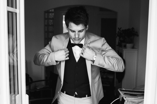 We snappen dat je als bruidegom aan het twijfelen bent over de etiquette van het trouwpak en of je het jasje nu wel of niet uit mag doen. Wat ons betreft is dat helemaal geen probleem! Het is netjes als je je jasje overdag draagt. Zodra je een dansje gaat wagen tijdens het trouwfeest kun je makkelijk je jasje uitdoen. Het is natuurlijk ook niet fijn als je straks helemaal bezweet op de dansvloer staan! ;-)