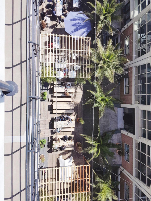 Ooh yeah! Er is een binnen tuin waar je lekker kunt lunchen! Of met je laptop even wat klanten kunt nabellen!