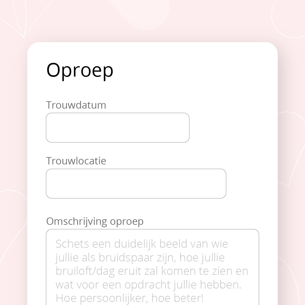 Het plaatsen van een oproep is geheel gratis. Enkel patissiers die bij ThePerfectWedding.nl zijn aangesloten kunnen reageren op je oproep. De startprijzen van onze patissiers beginnen bij € 60,- en zijn gemiddeld € 183,- voor een bruidstaart voor 50 personen.